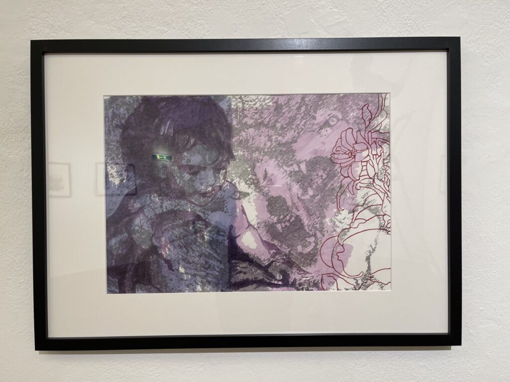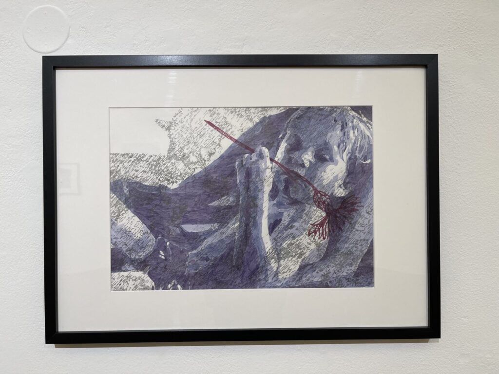 Die Grafiken bestehen aus zwei Ebenen, die erste Ebene ist mit Graphit gezeichnet und beinhaltet als Sujet Tiere. Die Tiere sind im Hintergrund, teilweise verdeckt und zum Teil versteckt. Die Wölfe zum Beispiel gelten in der altägyptischen Mythologie als Seelenführer, viele Krieger und Helden identifizierten sich mit dem Raubtier.